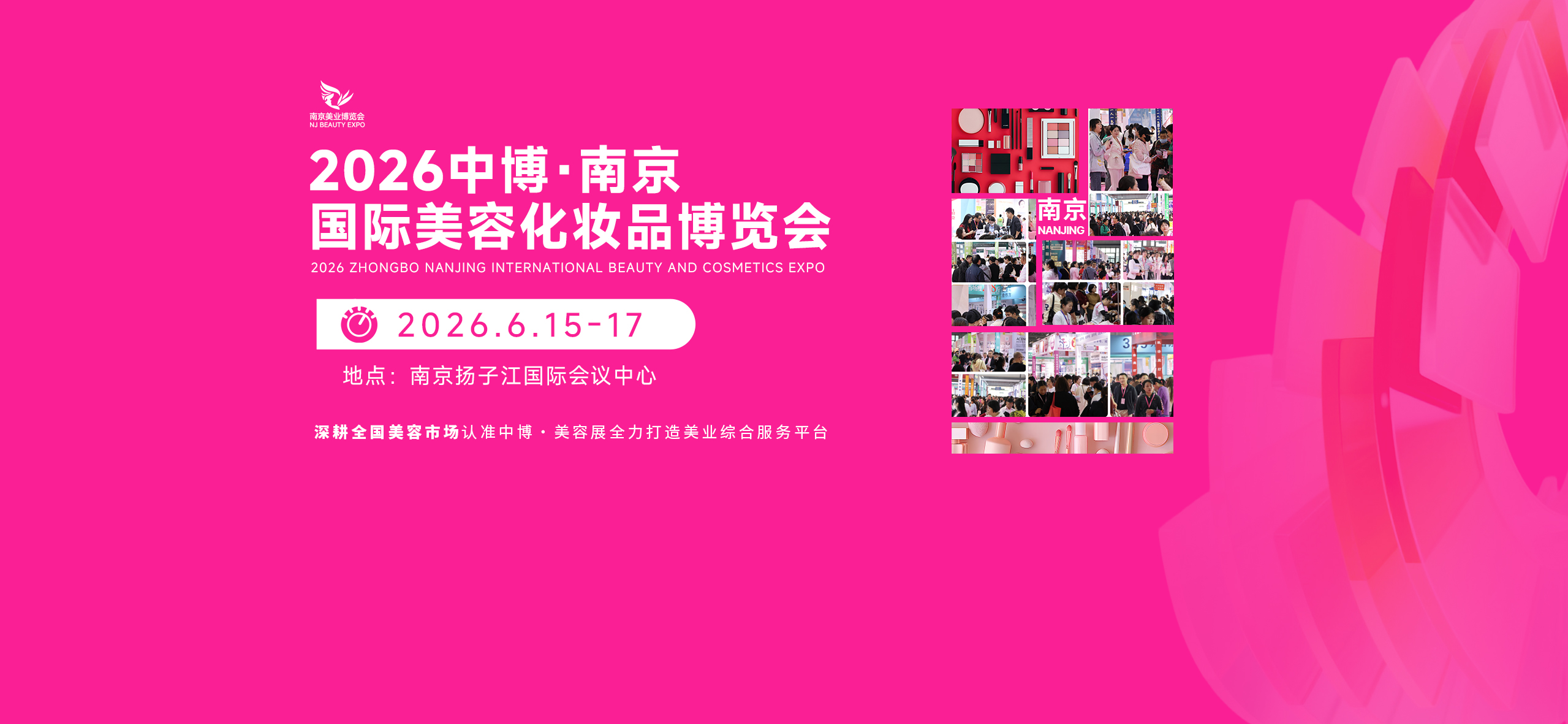 2026南京国际美容化妆品博览会(南京美业博览会),将于2026年6月15-17日在南京扬子江国际会议中心盛大开幕,本届展出面积将达20000平方米,规划国际标准展位400个,汇聚600多家国际国内参展商,展示品牌、项目、技术达2000余种,专业观众预计达20000人次。
